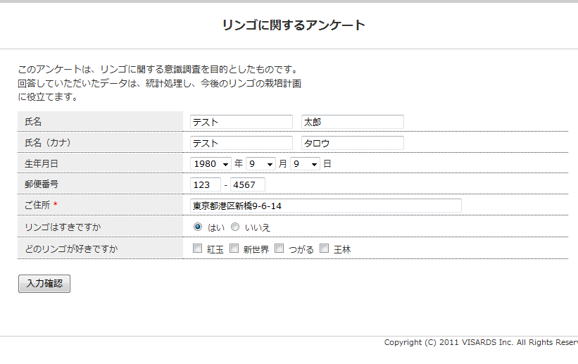 5) 入力をが終わったら、「入力確認」ボタンをクリックします。