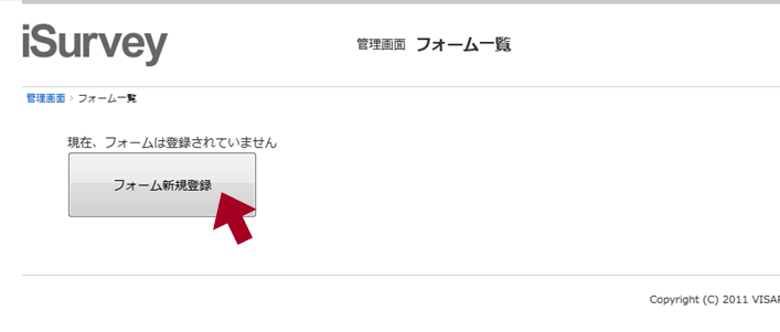 2) 表示された「フォーム一覧」のページで「フォーム新規登録」ボタンをクリックします。