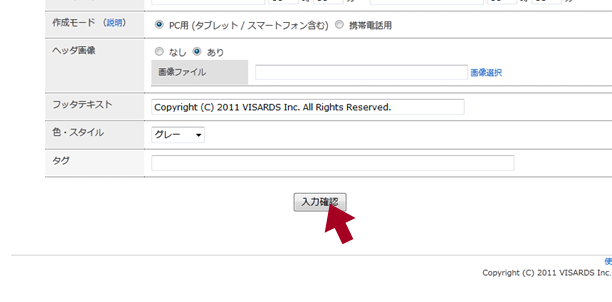 4) 入力が終わったら、「入力確認」ボタンをクリックします。