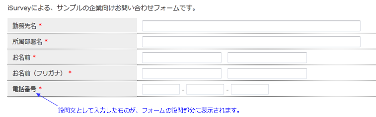 ここに入力したテキストが、生成されたフォームの説明文として表示されます。